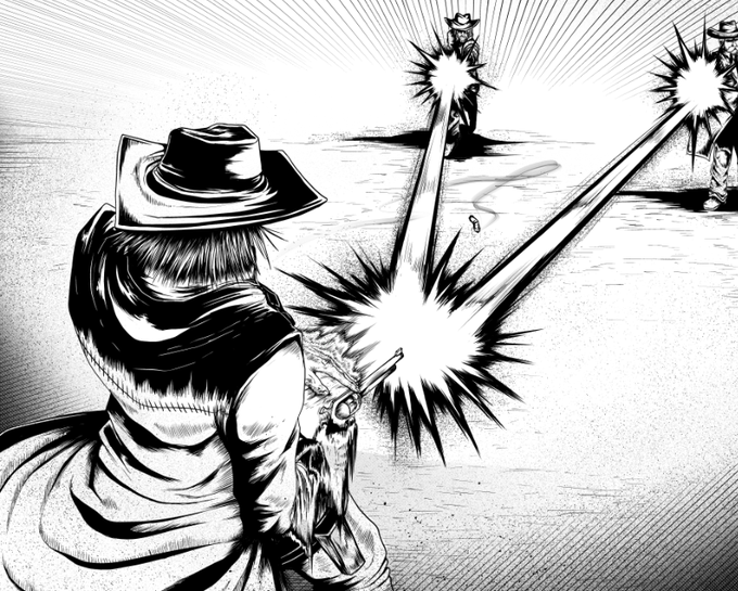 Getting back to working on my gunslinger comic I put down after school started. Hopefully ill get this done soon and actually get some physical copies made to sell. Here's hoping~ >- <