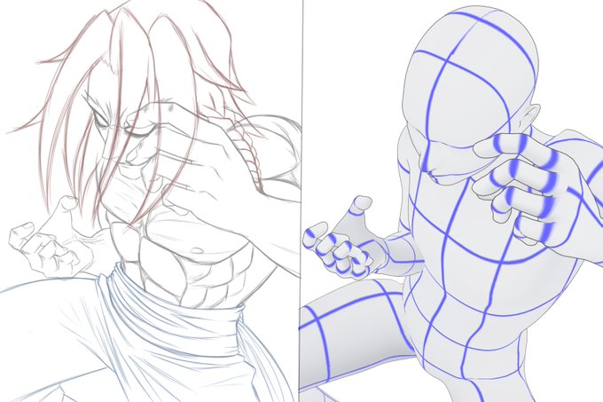 I like to use 3d models when I'm having trouble imagining a pose. It might seem a bit cheap but it really helps when you have artist's block