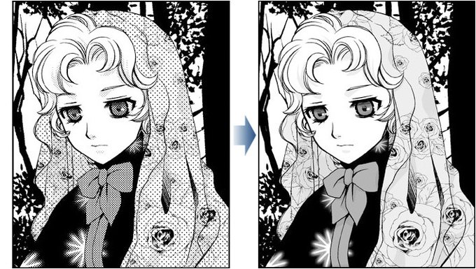 모노크롬 만화의 톤을 깨끗하게 인쇄하기 위한 강좌입니다. 톤 인쇄에 실패하지 않기 위한 요령을 소개합니다. 이외에도 톤을 겹쳐 붙이는 방법이나 웹에 만화를 공개할 때 편리한 내보내는 방법도 소개합니다.