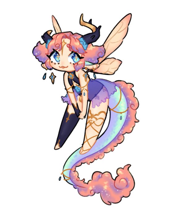 Your design is super ethereal and soft! The color scheme makes it feel like everything shifts through a pastel rainbow range of colors, and your glow face and body markings are soo beautiful, aswell as your cristales and eyes!✨