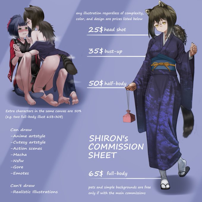 If any of ya'll are interest in my works ya can check out my commsheet right here along with my specialties! for more info just DM! 🍀