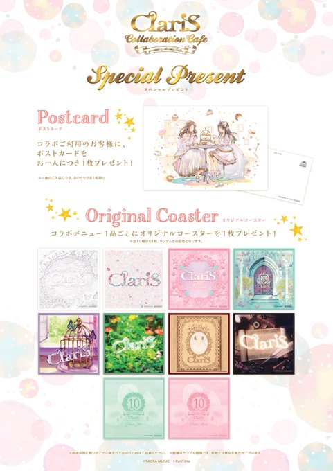 11/26から、CoLaBoNoにて、クララとカレンの女の子2人組ユニット・ClariS(クラリス)のベストアルバムの発売を記念してコラボカフェ開催決定! 詳細は後日公開いたします。 お楽しみに♪ https://t.co/oJ7uIagmgi #ClariS #ClariS10周年