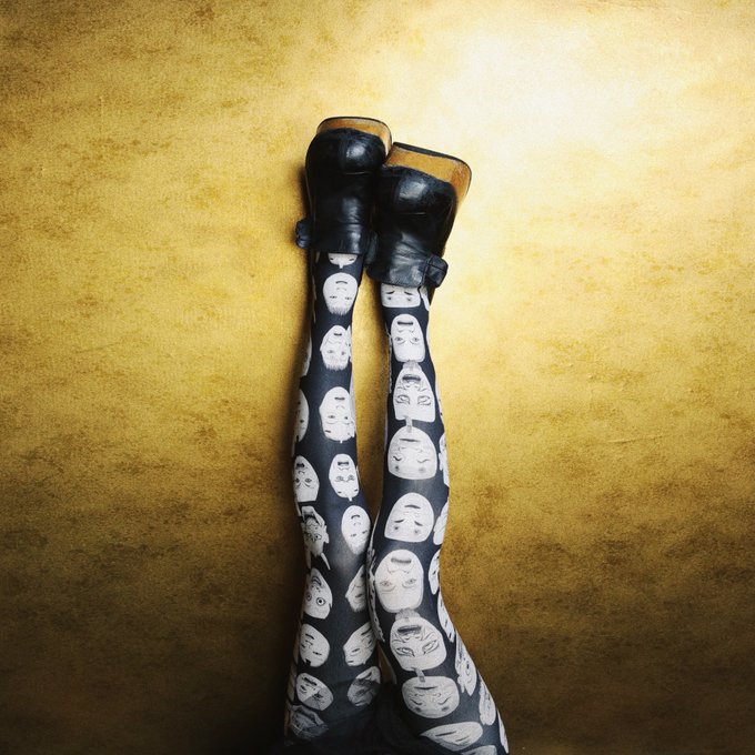 寂しがり屋の方にぴったりな、能面がいつも見守ってくれるデザインです。ロングセラー大人気作💆ワタシが作ったタイツ第1号❗