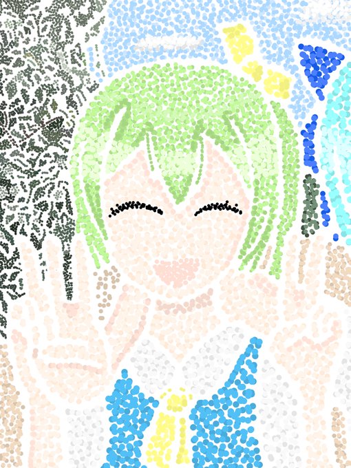 #今年もあと1ヶ月になりましたが画力がどうなったか見てみましょう 左は今年の年賀状に使った絵です 右はこないだ上げたほぼ同じ構図の点描画 そもそもの塗り方が違うので単純な比較はできませんが