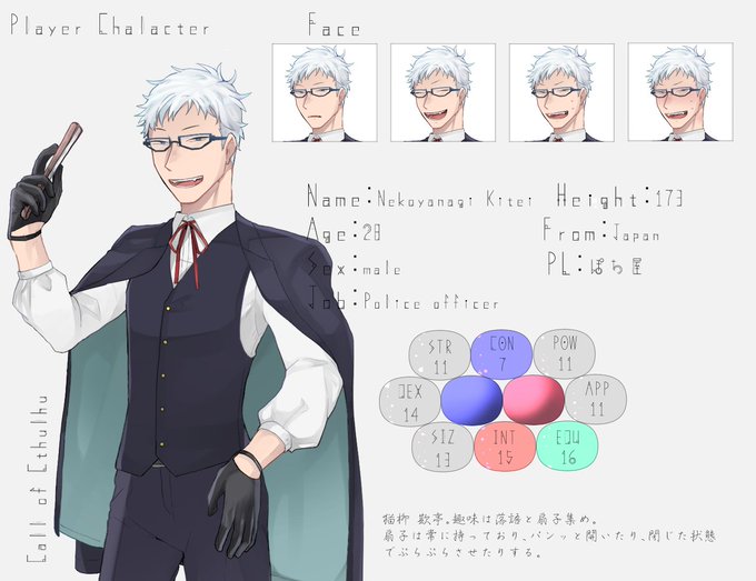 先ほどミスってたので再度。猫柳 欺亭(ねこやなぎ きてい)。サン〇オ。 落語が趣味という事で、現在頑張っています。警察です 羽織るか否かでめちゃくちゃ迷ってた