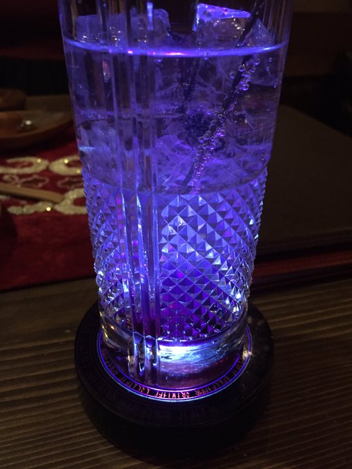 ソラス・ギベオンのイメカク作ってもろた ノンアル〜〜 最初透明だけど混ぜると紫色になる 綺麗な紫いろじゃ……