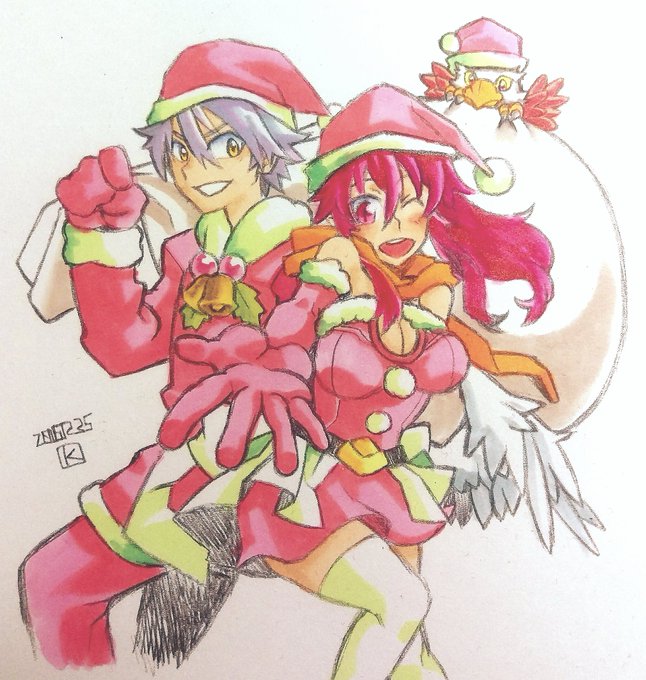 ひさび参加。傑作選で萌えてた所にイブにカイ君が回って来て幸せ過ぎたのでそのままの勢いでカイ君とカリンちゃんでサンタコス。ちゃんと仕上げたかったけど時間がないので着色は30分仕上げ…ヽ(;ω;)ノ