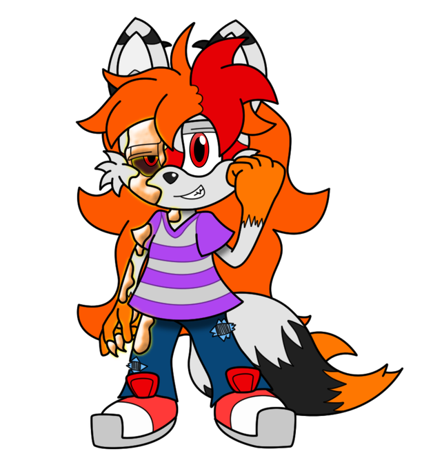 The OC above, started out as your typical recolor of Tails with only height and a fourth bang being the difference, with the “long lost brother” trope thrown in on top.