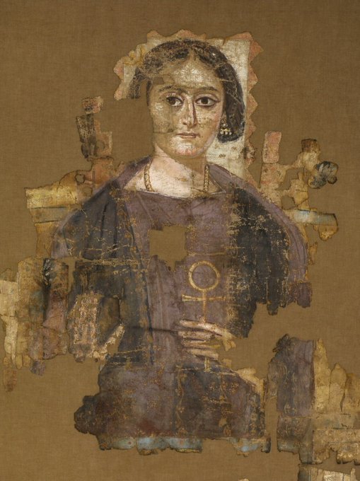 Fayum portrait and matching necklace made of golden bird-shape elements (#Roman Egypt, 3rd century)