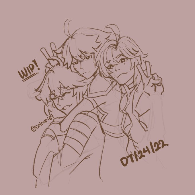 I heard that Heizou’s birthday was yesterday, so I decided to draw Aether + 2 of the anemo boys that recently came home, and imagine that this was a pic taken by them as they hung out for his birthday 🥳