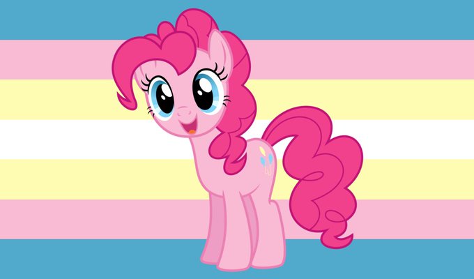 She/They bisexual flag with Pinkie Pie from My Little Pony: Friendship is Magic, requested by @favshetheybi
