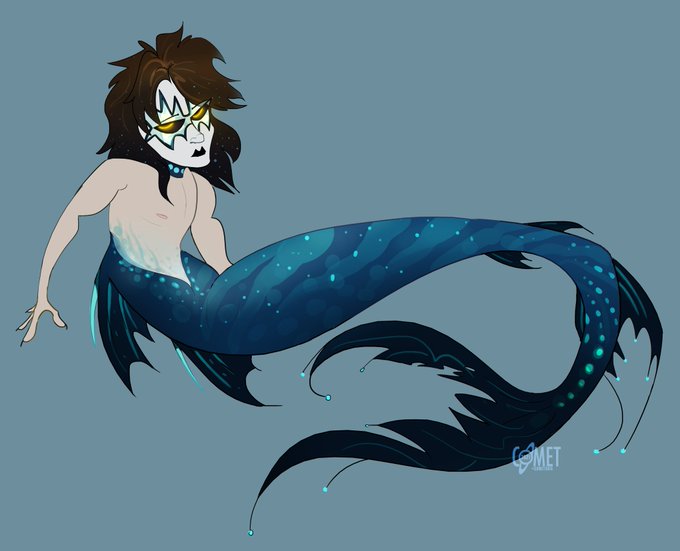 First batch of KISS mermaid AU, inspired by themes from cosmicrealofkissteria on Tumblr :) Gene: Demon of the deep Vinnie: sunset Eric Carr: pearls Ace: night