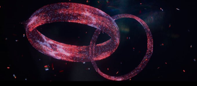 Le symbole de la cravate de vision peut représenter à la fois le pictogramme d’une prise, mais aussi, l’encloisonnement, 2 points dans un rectangle et 2 autres points qui ne peuvent y rentrer. Comme une télé, ou la réalité que Wanda se construit, isolée de tous ?