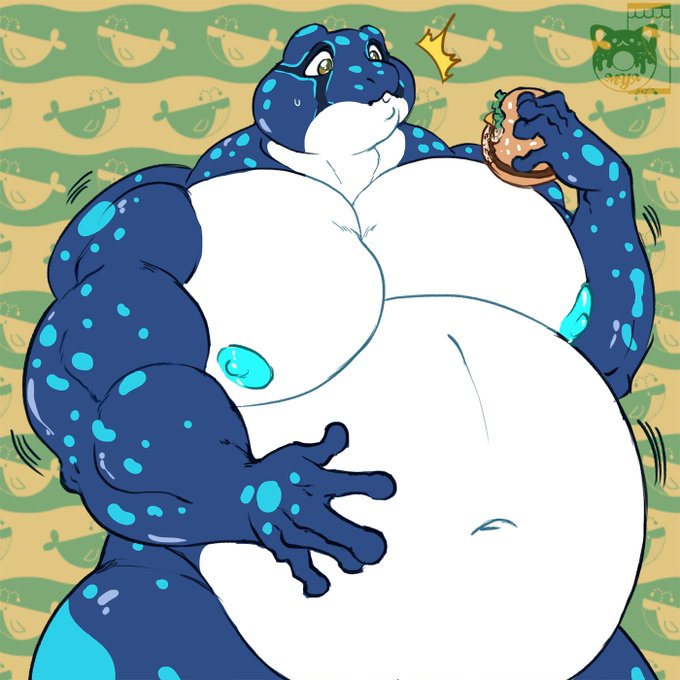 A darling froggo finds his burger pretty beefy, in a unique way~