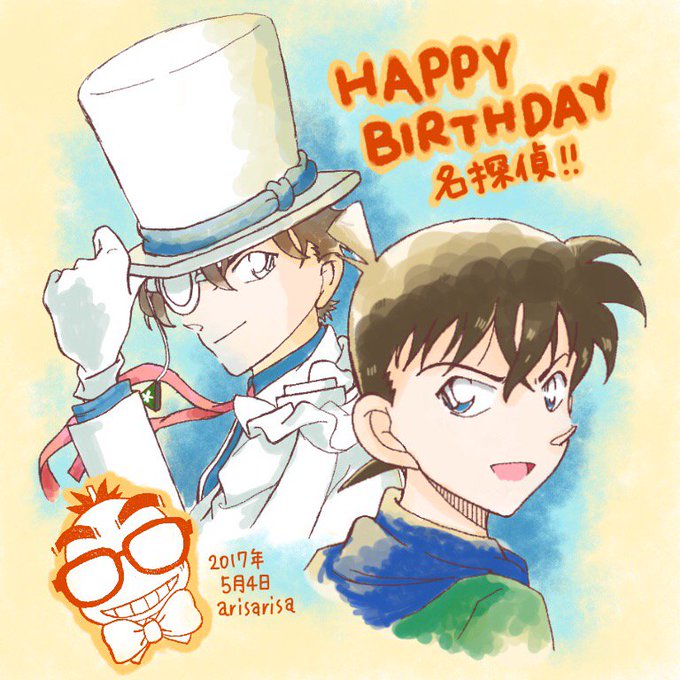 明日の名探偵お誕生日に向けて描きました。リクエスト貰った怪盗キッドも入れ込みました。 もう一枚描いてるのでそれは12時過ぎたらアップしまーす。