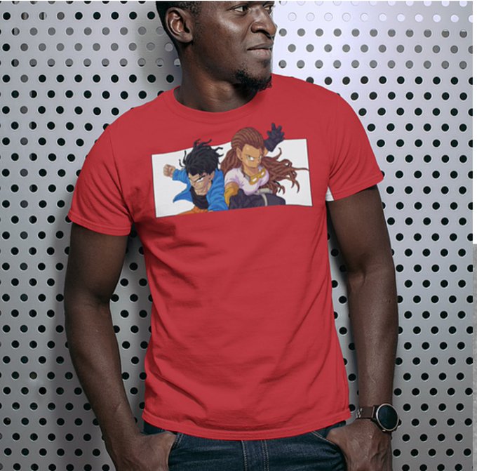 Nas and Amara character tees now available! Grab your shirt with a copy of Sun Eaterz for more Nas and Amara ☀️