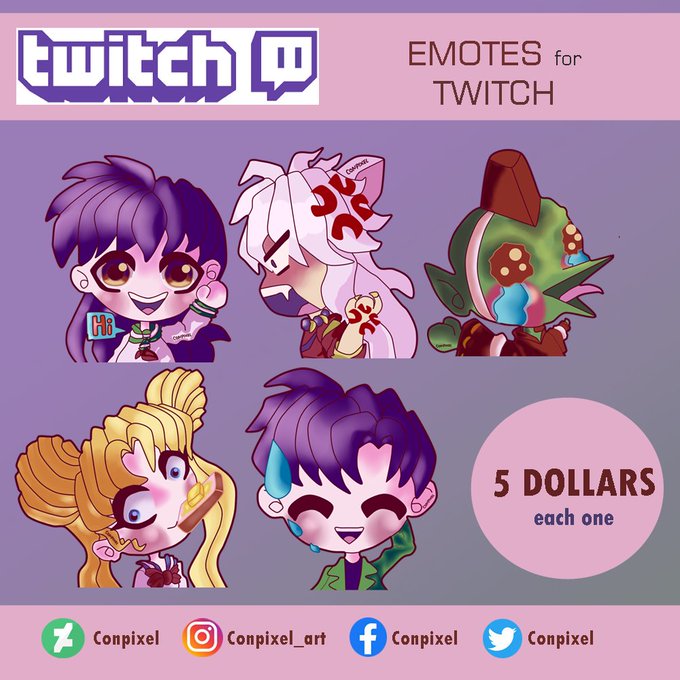I make emotes like these for $5! A few days ago I posted one from Glamrockchica.