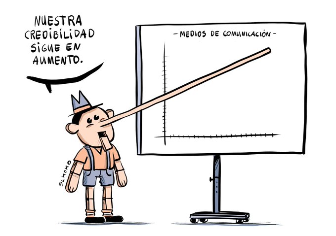 Gracias a las redes sociales, la población nacional e internacional ha logrado evadir la (des)información de los medios prepago. Caricatura de @Elkokoparrilla