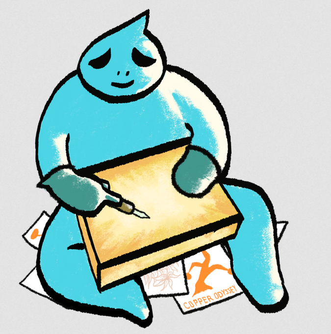 Bad Girl marveling at a lithography stone she prepared.