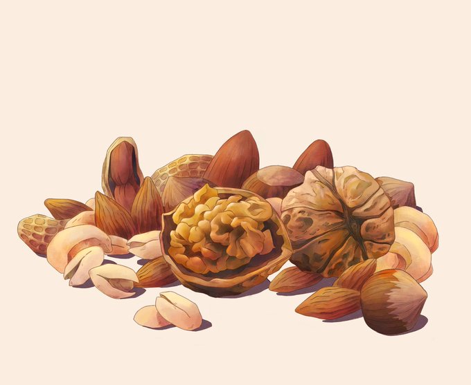 Good morning👏😁 I tried out a new style for this one, which was a bit of a challenge, but I think it ended up looking pretty good anyway💪🏻 I felt like I had to draw some healthy snacks after all the donuts 😂 #foodillustration #nuts #illustration #digitalart #healthysnack