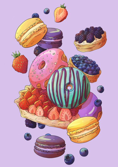 @TheWhaleTale Happy birthday! I hope you’ve had a lovely day so far, and that you’ve gotten to eat some delicious cake 😁👏 Here’s some of my most recent illustrations 🙌 As you can tell I love drawing food 😂