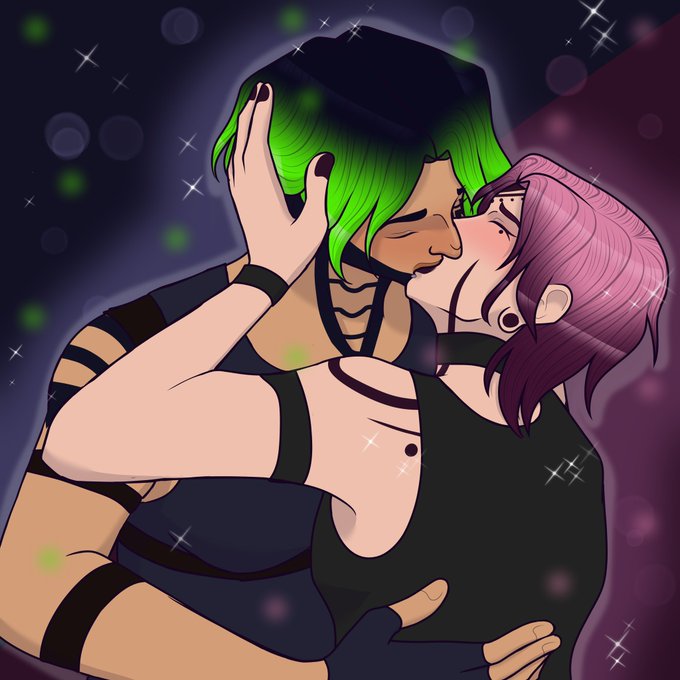 @HannahAlexArt Kinda started calling these two “pink” and “green” for now because they’re not officially released yet in my webcomic but… ✨them✨ 🥺❤️❤️
