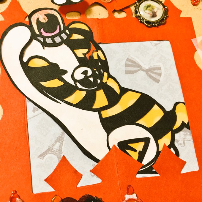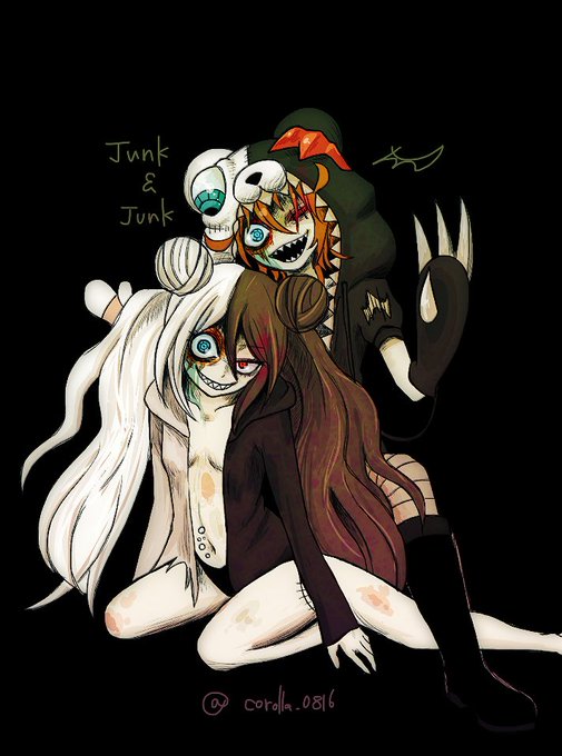 Lightさん【@kurobuchiya29q 】がデザインされたジャンクモノクマ擬人化ちゃんと、コラボさせていただきました♡ ちょっとグロ注意です。