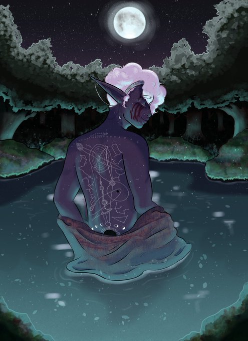 my first full piece for my stars druid drow, Emilio! A spiritual (and lowkey scientific) guy that can tune into the fabric of space time on a magical level