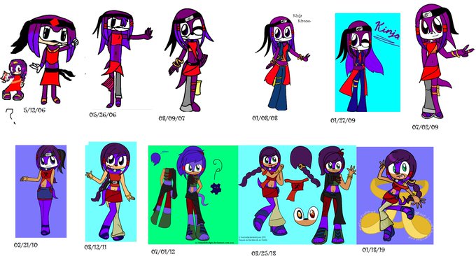 @F0XBIT Here's a timeline of all her designs! Originally she was actually Knuckles' daughter and conceptualized as a villain, but after a loooooot of reworking Kinja is a lovable, pure hero who would do anything for her friends. Also slowly took her out of the island ninja aesthetic lmao