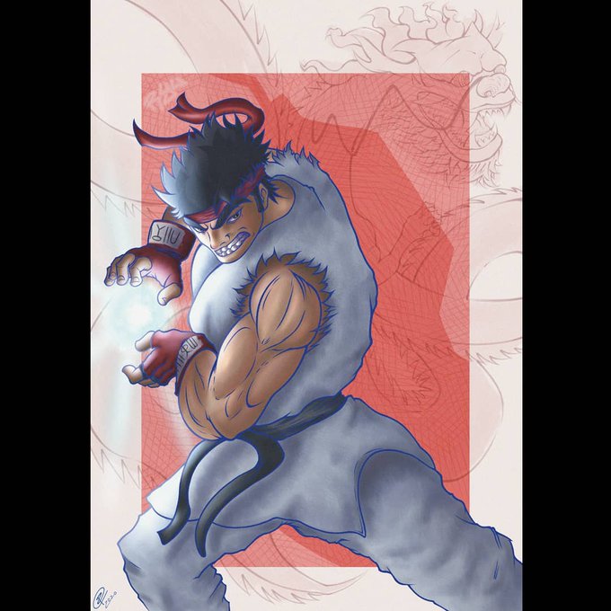 Nuevo dibujo del Ryu de Street Fighter. Tenía en mente hacer una ilustración con más personajes pero de momento queda aparcada. También una foto del proceso. Denle amor (o no)