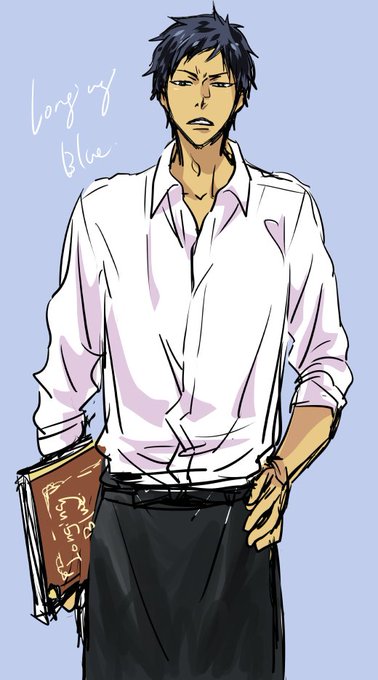 青峰っちに仕事着^^今は私服なので過去の制服からカフェ店員のを。 #1番目にリプきたキャラに私服2番目に部屋着3番目に仕事服着せる