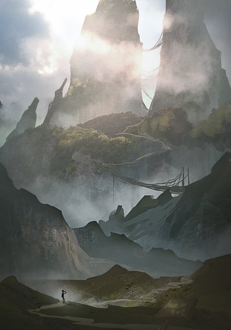 #背景版深夜の真剣お絵描き60分一本勝負 お題「登り坂」で参加させていただきました。 目的地まであとちょっと。