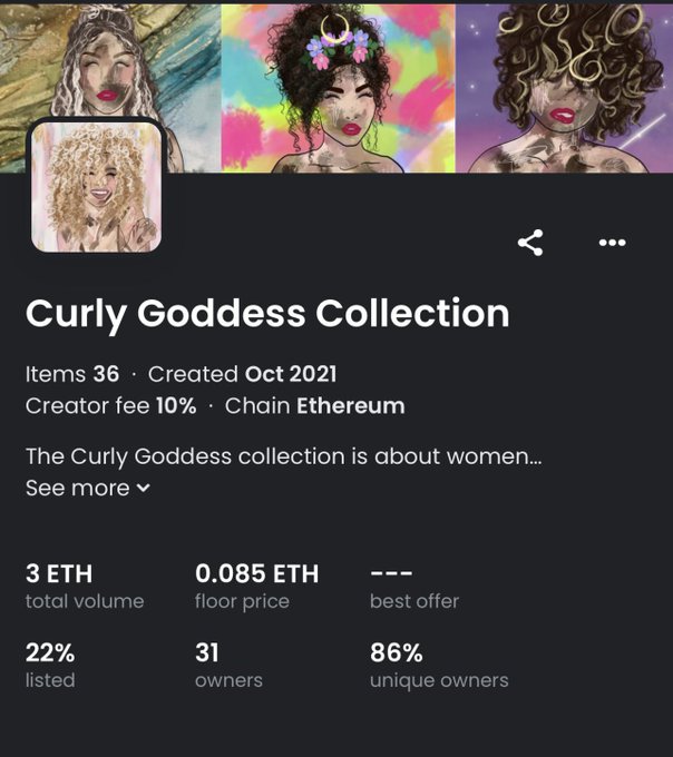 There’s one Curly Goddess available on secondary below original floor price! Be sure to grab her if you want to become part of the OG Curly Goddess Club