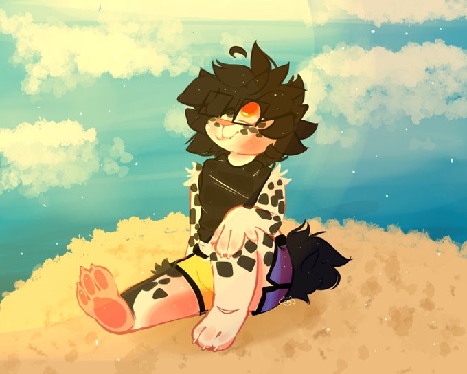 Hello ! I'm moo, I'm a black non-binary furry artist, I love doing painted styled art <3, and I currently have an adopt for sale 💖