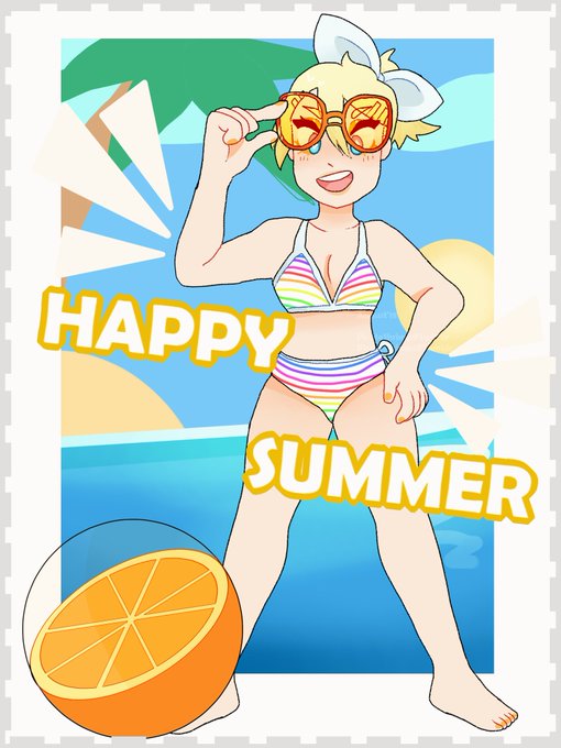 🏖️🍊☀️🌊☀️🍊🏖️ Rin's swimsuit from Summer Idol! #vocaloid #kagaminerin #rinkagamine