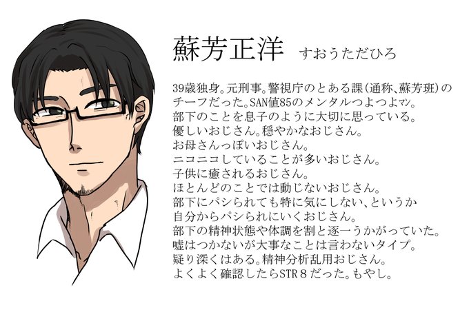 やっとかけたゾ、CoCの自探索者紹介その1 ネタバレはないはず。 厄介おじさんです。ネタバレ部分は後でぷらいべったーで放流するね。 部下の皆さんは友人の探索者なんで、間違ってたらごめん。 いっぱいすこでいっぱいしんどい子たちです。