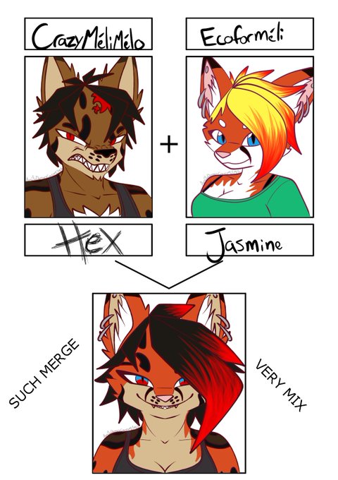 Oc merges with @Ecoformeli's character Jaz and mine being Amber, Iris, Teanna and Hex
