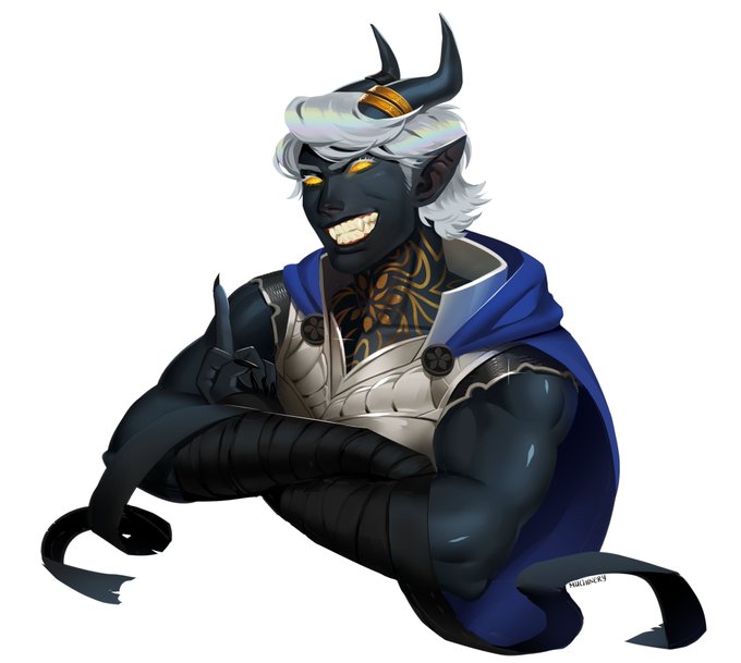 Since you are a lover of tieflings i feel it only right to ask for my bastard of a man Zeal to be drawn! (Art by @ mc_much)