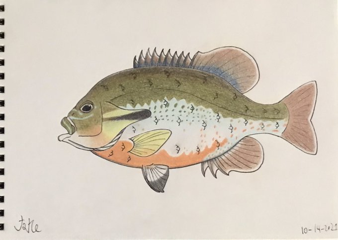 Here is a small colored pencil illustration of a redbreast sunfish I finished yesterday. It was drawn in my mini colored pencil pad. I might make a bigger one in the future.