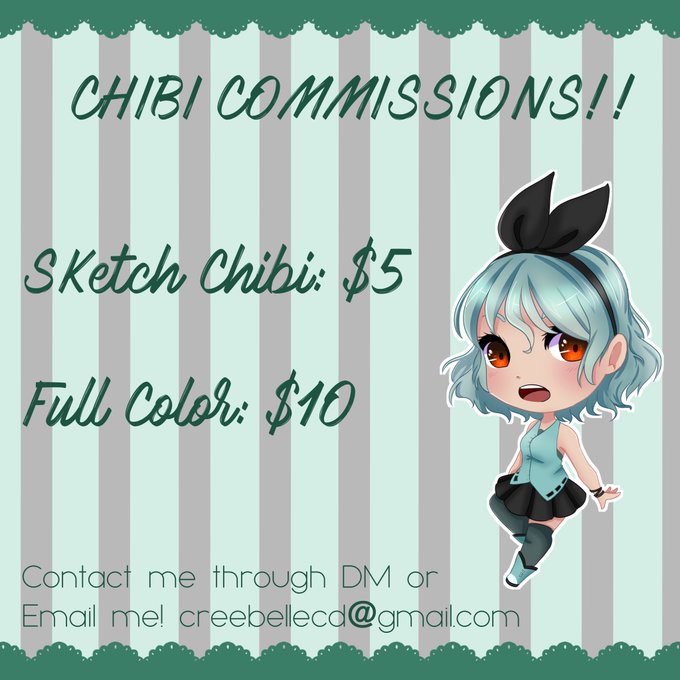 I am opening up emergency commissions. I am opening Chibi Commissions as well as regular commissions! Thank you for the consideration!