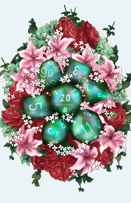 New print that will be available for preorder on my store soon as well as sold at #animethon in August! #DungeonsandDragons #Dice #Flowers