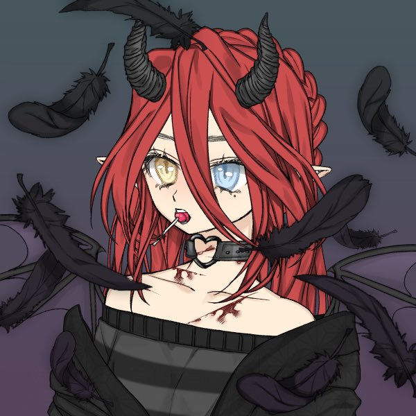 Voilà le petit FanArt de Plume pour @Araeshart fait en stream, un vrai plaisir de t'avoir dessiner, malgré la galère des cornes et des cheveux