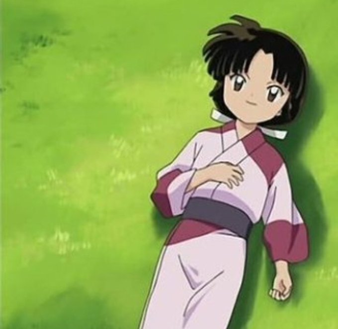 In this picture there's Sango as a child, around the age of 10/11. She is wearing the same kimono she wears as an adult, even when she's a mother.