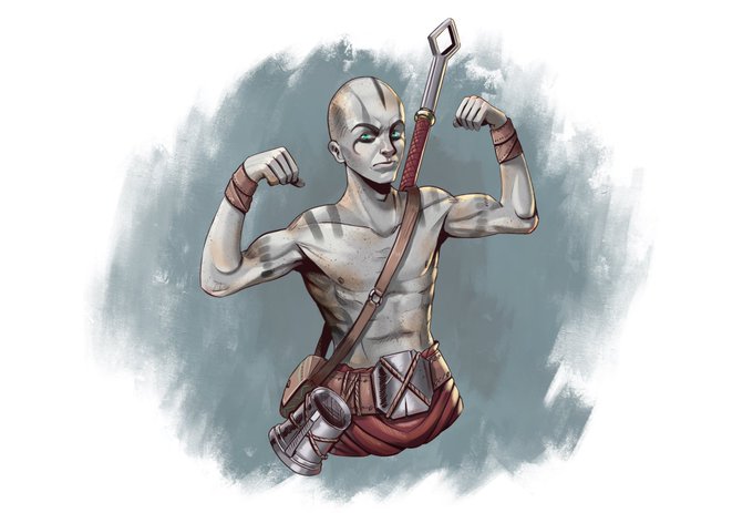 @DropTheDie @PhotonBetamax This is Kraitos (art by @Carneiro_RPG), a Medusae Arcane Soldier — both the race & fighter subclass are homebrew by @Wandering_DM, as seen on the Age of Arcana on @Roleplayers_TV twitch on Mondays.
