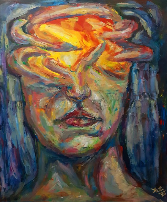 I love to created art by knife painting on canvas.most my art are about expression , dark art , social pecking.