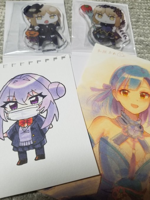 年賀状をもらいました。 和装百合子もらいました。セイバーオルタのアクスタとオリキャラ(紫苑ちゃん)もいただきました。 嬉しすぎて爆ぜました。ありがとうございました……………………