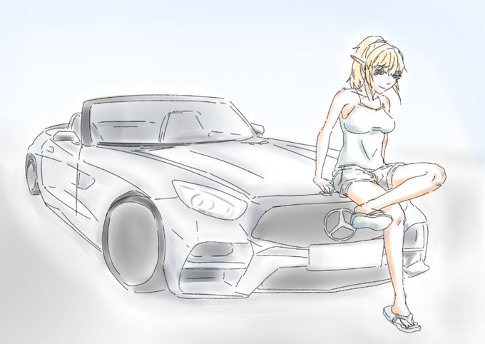 お題絵「夏」+αサンダル 4hくらい メルセデスAMG GTいいっすね