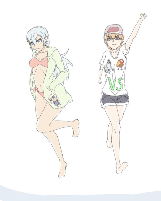 フナ主お題絵「オリキャラ水着」「夏服」「SD絵」「ハトですよVSキョロちゃん」2時間で全部ブッ込んだっ