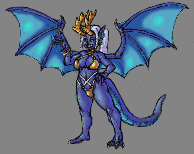 Sketch of my dragon queen Maulane in her bikini again. not quite close to summer but could use the sun tho