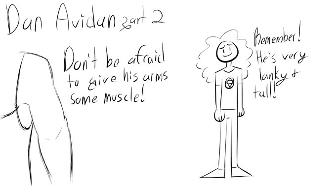 I doodled up some sort of reference sheets for the boys, the Dan part 2 one is literally just "oh fuck I forgot to mention his arms" so you can ignore that lmao.